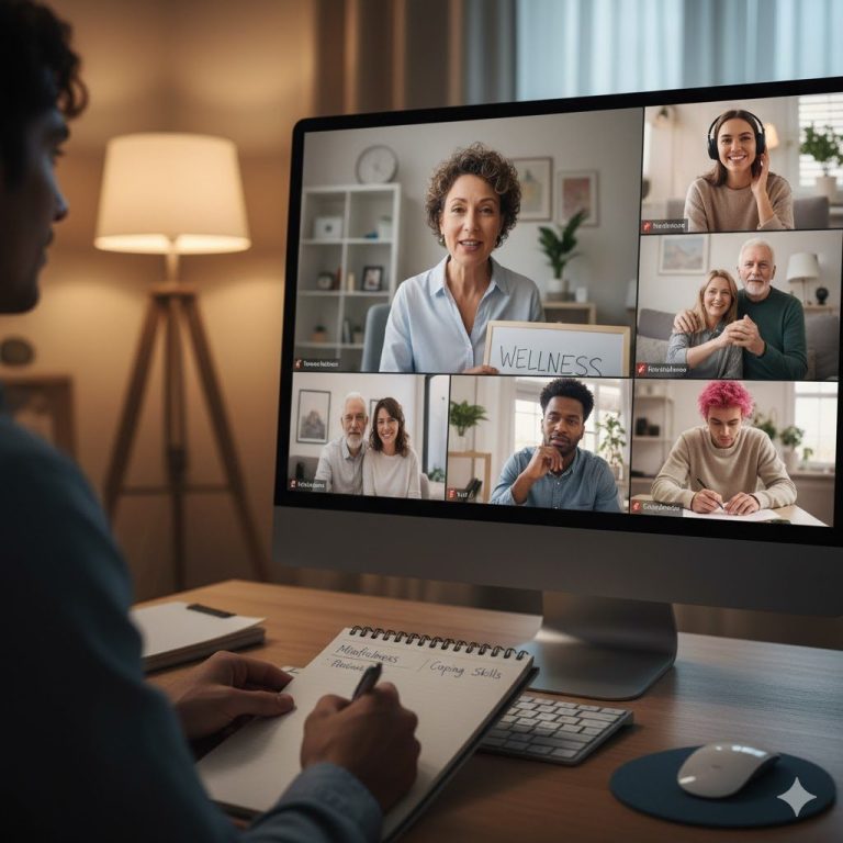 Le travail de groupe en visio optimise les échanges et enrichit les interactions, rendant ainsi chaque séance plus productive. Partager vos difficultés vous permet de les confronter et de réaliser que vous n'êtes pas seul(e) face à elles. Une dernière séance de bilan vous est proposée pour conclure ce parcours